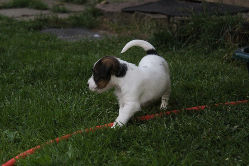 gew. 21.12.2014 V: Harry Potter vom Räuberschlag M: Robin's Luxus FW: V, SH 36cm, BU 44cm Vollzahniges Scherengebiss Rauhaar weiß-braun PLL: -/- LOA -/- SCA -/- PL: o.B. AU: o.B. AEP: o.B. WT,JP,BP,sil